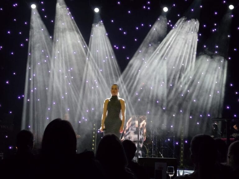 Drei blaue Männer und eine Band, die sehr laute Töne anschlägt, wird den Zuschauern in Berlin geboten. Um empfindliche Ohren zu schützen, werden dafür am Eingang extra Ohrstöpsel verteilt. Ja, man muss sagen, die Lautstärke wird hier schon ordentlich aufgedreht. Dafür macht sie das Show-Erlebnis aber auch noch intensiver. Allgemein spielt die Musik eine große Rolle in der Show, gerade in der zweiten Hälfte verwandelt die Blue Man Group den Saal in einen Club. Es erklingen angeteasert Songs wie “99 Luftballons”, während später riesige Bälle durchs Publikum fliegen. Dabei zeigt sich die Lichttechnik topmodern und sehr beeindruckend.