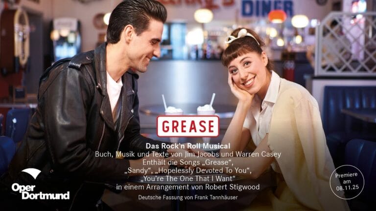 In einer mit Spannung erwarteten Neuinszenierung der Londoner Original-Produktion kehrt “Grease” hierzulande ab dem 11.12.24 endlich wieder auf die Bühnen zurück und geht auf große Tour. Das Hitmusical, das auf dem Hollywood-Filmklassiker basiert, nimmt die Zuschauer auf eine schwungvolle und romantische Reise in die 50’er mit! In eben diese Zeit zurückversetzt fühlten auch wir uns bereits heute, als wir die beiden Hauptdarsteller Ben Darcy (Danny) und Lottie Power (Sandy) zu einem Pressetermin in Daisy’s Diner in Oyten bei Bremen trafen! Wie gut die musikalische Kostprobe war und was die beiden Musicalstars uns im großen Exklusiv-Interview alles verrieten…