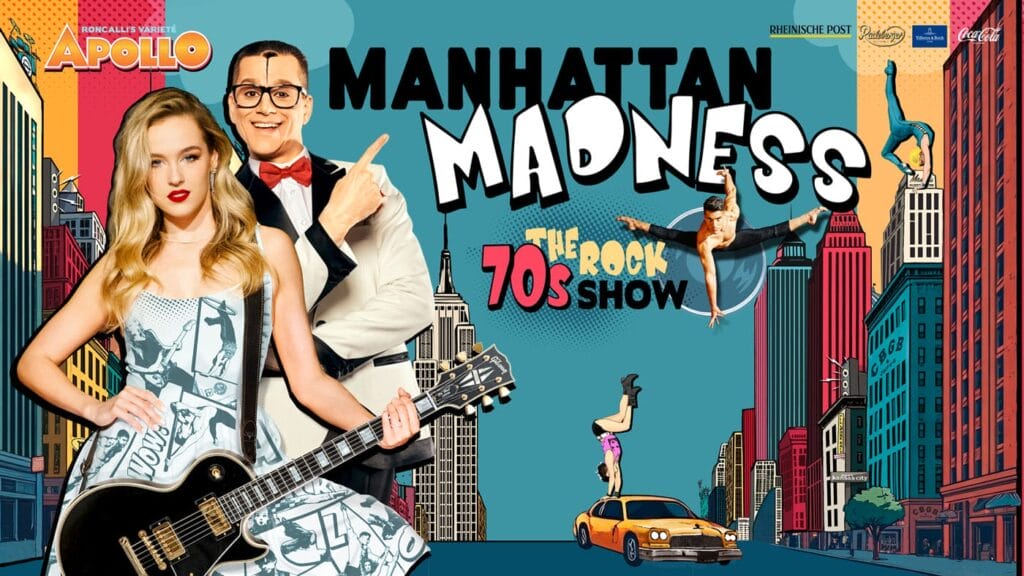 Manhattan Madness geht in die Verlängerung! Aufgrund der hohen Nachfrage und ausverkauften Shows spielt die diesjährige Rock-Show in Roncalli’s Apollo Variete eine Zugabe und wird um 7 Zusatzshows bis zum 6. April verlängert. Seit dem 10. Januar bringt das Varieté an der Düsseldorfer Rheinpromenade mit „Manhattan Madness” den Spirit des New Yorker Undergrounds auf die Bühne. Inspiriert von der legendären Clubszene des CBGB Clubs und der dort aufkeimenden Punk- und New-Wave-Bewegung, verschmilzt die neueste Inszenierung von Adrian Paul, Sohn des Roncalli-Gründers Bernhard Paul, spektakuläre Artistik mit elektrisierender Live-Musik. Besucher erwarten Rock-Sounds der 70er Jahre von Punk und New Wave bis hin zu Hard Rock.