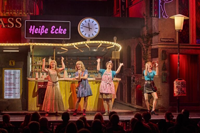 Doch nun ging es auf der Bühne um Weihnachtsgeschichten rund um den legendären Kiezimbiss „Die Heiße Ecke“. Seit 2003 ist dieses St. Pauli Musical ein Dauerbrenner in den Schmidt Theater, die bereits mehr als 2,9 Millionen Gäste sahen. Neun Ensemblemitglieder schlüpfen in „Weihnachten in der Heißen Ecke“ in über 50 unterschiedliche Rollen.